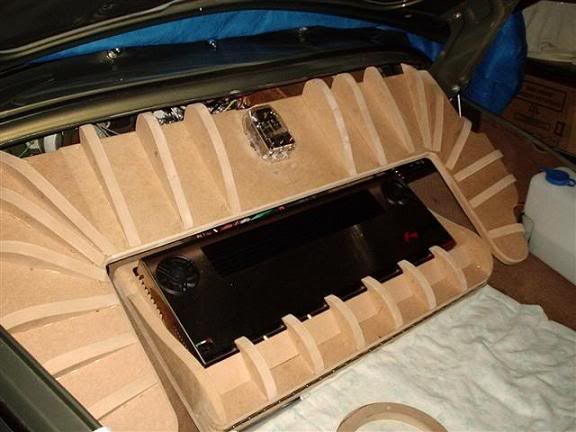 Well finally the painted amp rack/cover tier is bolted in place - four M8 S/S button head bolts holds the upper tier frame in place....and the lower rack is screwed onto the MDF support blocks. The rack was designed so that I could access the fuses easily and amp controls...also with four screws the lower amp rack comes out easily to access wiring underneath. I would have liked to incorporate some vinyl into the upper tier but didn't have any to match the interior, nor the time to modify it further. Ran out of time tonight to get the system running (just have to crimp the last 4 gauge power/ground connections....then hopefully it will fire to life to blow off the cobwebs! http://www.manxgallery.org/gallery/a...ack25_Nov1.jpg Depending on the light/flash, the colour takes quite a different appearance. http://www.manxgallery.org/gallery/a...ack26_Nov1.jpg |