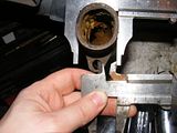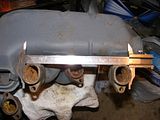 http://i260.photobucket.com/albums/i...3.jpg~originalhttp://i260.photobucket.com/albums/i...1.jpg~original The good news, is that the cyl.1&4 stud pattern seems perfectly centered, eaventho it looks a bit off because of the shape of the 2 "ears". So I only have to do one more plate for the cyl.2&3 jig. That one has the holes offset by 3mm clockwise (looking into the exhaust port). The tabs will definately need to be trimmed to fit in there. The oval flanges fit very well inside the ports. http://i260.photobucket.com/albums/i...2.jpg~originalhttp://i260.photobucket.com/albums/i...1.jpg~original This is how I measured: The tail of the big caliper was sitting on the other stub. http://i260.photobucket.com/albums/i...6.jpg~originalhttp://i260.photobucket.com/albums/i...8.jpg~originalhttp://i260.photobucket.com/albums/i...7.jpg~original |
