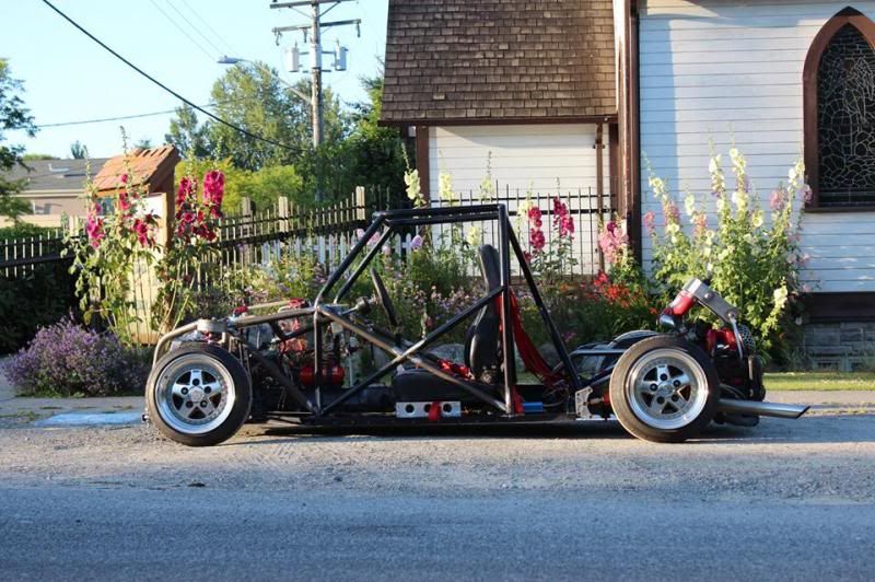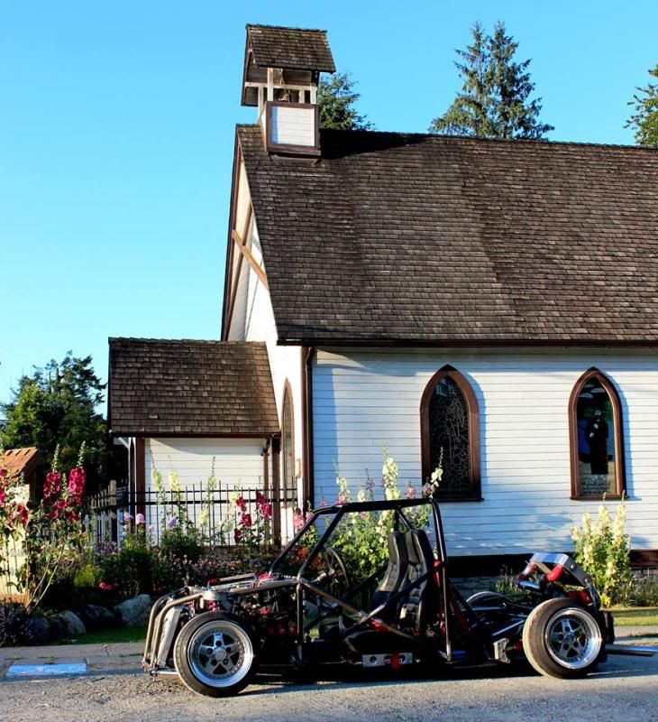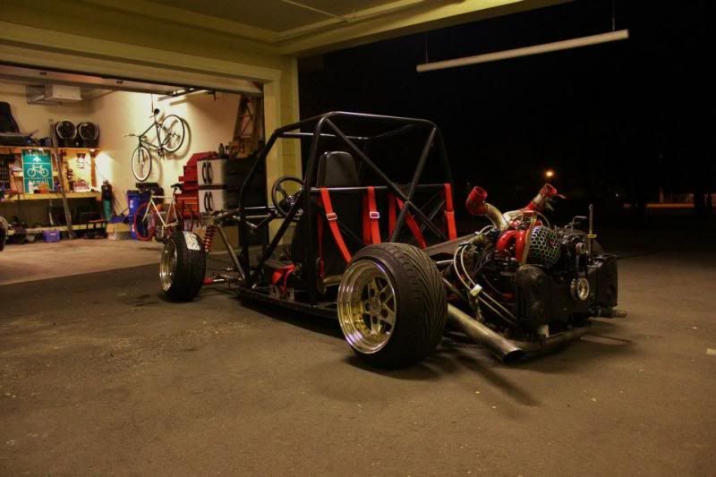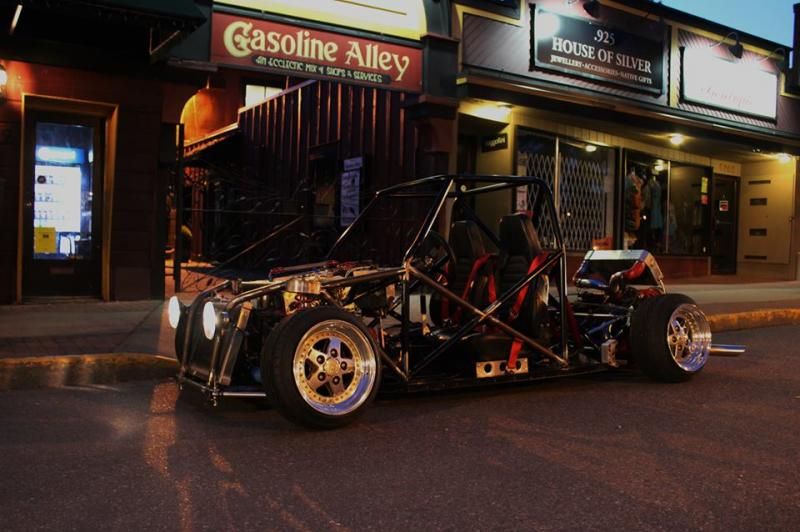 http://i7.photobucket.com/albums/y25...2.jpg~original Drove the car to work. Alongside my friends RB26 powered 240z:cool: Trailered the car out to a drift event in aggassiz on a tight 1/4 mile oval. Not really the best track to "test out" the car. This happened. http://i7.photobucket.com/albums/y25...7.jpg~original http://i7.photobucket.com/albums/y25...e.jpg~original Great bunch of guys helped me get off the track and back onto the trailer. http://i7.photobucket.com/albums/y25...8.jpg~original Moved again:rolleyes:Been busy in the shed rebuilding. Finally got it up and running yesterday. http://i7.photobucket.com/albums/y25...f.jpg~original http://i7.photobucket.com/albums/y25...5.jpg~original Front end is now fully tubed. Fuel cell added. Changed my front suspension to an a-arm style. It sure is fun to drive around like this. Wife is pregnant so this will be put on hold for a little while. Hopefully will be getting a bigger shop soon so I can fit the body overtop. I purchased a 1 piece fiberglass front end from MarkVFiberglass to replace the damaged section from the crash. I was pretty defeated after "incident" at the track. However I didn't give up just yet. I will add some more details later of what I did with the front end. |