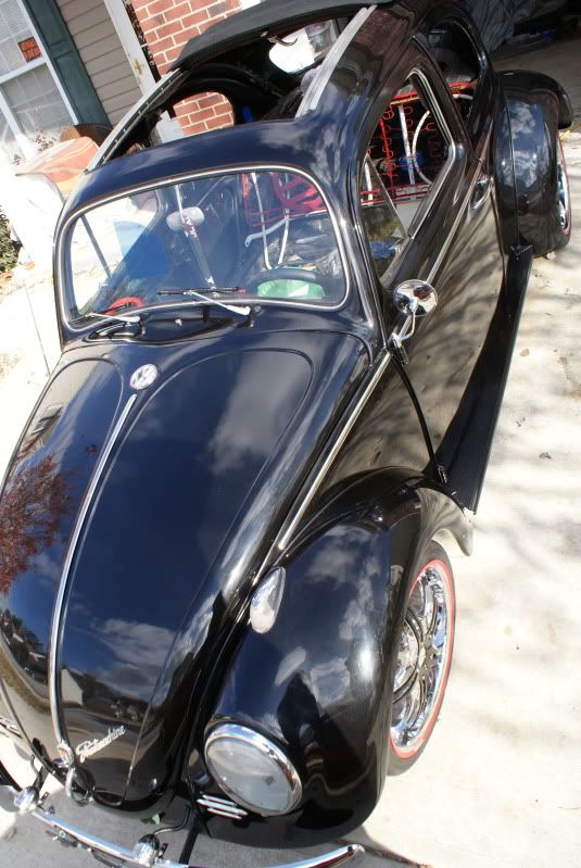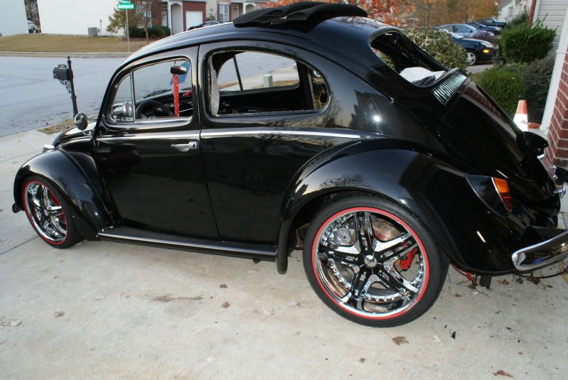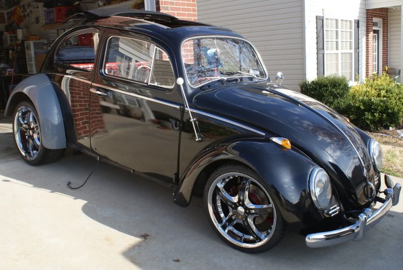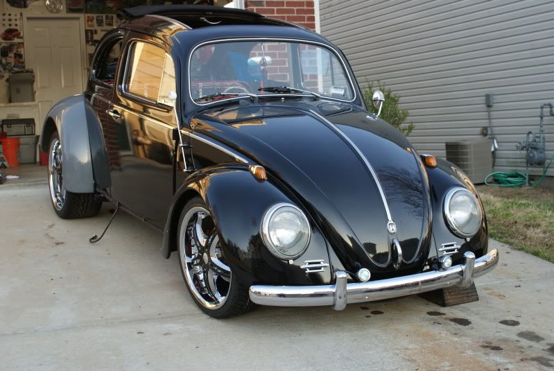 After losing a major contract my company suffered a variety of set backs, I had to sell the Superbeetle. A year goes by and back on solid ground I went in search of another Super, but I came across a 1963 that was just too good to pass on. Up until now all my research and parts gathering had been toward building a 74 Super GL, so now I had to sort of start over again. I found that if I switched to the later model balljoint front end and a I.R.S. I could use the parts that so far I had spent the most money on, the braking systems. Now on to specs and Pics: 1970 original pan w/ one dime size hole in battery tray area, stripped, por-15 top and bottom http://i11.photobucket.com/albums/a1...5.jpg~original http://i11.photobucket.com/albums/a1...4.jpg~original Bullet proof Front end: 4 in. narrowed beam from airkewld.com, then I added the steering damper mount and turn stop bracket from the original beam Tar-ox 6 pistons disc brakes front drilled and stud to 4.5x5 at vdubengineering, then cryod,slotted and dimpled at frozenrotors,I painted the rotors, the calipers came in red, steel braided brake lines,new steering box, Superduty narrowed tie rods from vdubengineering, new tie rod ends, and new lowered balljoints http://i11.photobucket.com/albums/a1...0.jpg~original http://i11.photobucket.com/albums/a1...1.jpg~original Rear end: Reconditioned and painted stock trailing arms, all rubber replaced with urethane Cb performance rear disc brake, drilled and stud at vdubengineering, then cryod,slotted and dimpled at frozenrotors, I painted the calipers and rotors http://i11.photobucket.com/albums/a1...7.jpg~original Wheels and tires: D'vinci Attivo's front 18x7.5, ET.43mm, 215/35/18, rear 19x9.5 ET. 30mm, 265/30/19 http://i11.photobucket.com/albums/a1...9.jpg~original http://i11.photobucket.com/albums/a1...7.jpg~original http://i11.photobucket.com/albums/a1...8.jpg~original http://i11.photobucket.com/albums/a1...3.jpg~original Interior: Momo steering wheel, AutoMeter UltraLight II gauges. http://i11.photobucket.com/albums/a1...5.jpg~original Soon to come: I really like the new Stealth seat by Scat series 1615. Check it out! http://www.procarbyscat.com/new_releases/stealth.html The only major change to the body was to add 3 in wider fenders from CCC. I had to redrill new holes in the bumper bracket in order to slide the bumpers rearward 40mm. I wanted big fenders and a rear bumper. This also cleared up some clearance issues I was having with the W decklid that Im using. Other changes were very minor such as script emblem on hood from volkswagen to street machince, fog lights, etc. By the way the car has a factory 3 fold ragtop, sorry none of the pics show it. The cover is black canvas. http://i11.photobucket.com/albums/a1...1.jpg~original Engine: Right now all I know is that it will be a 2 ltr. plus aircooled vw. Type 1 or 4 is still up in the air. Dream engine is a Type 4 2563cc. Go big or go home. But I haven't hit the lotto yet. I put together a slide show of the build so far. Check it out. Dial up user beware, file is not small. High speed user are up and running in now time. http://s11.photobucket.com/albums/a1...t=927e80ce.pbr |