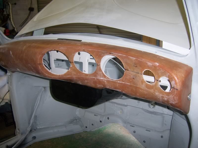 Decided to make my own dash (It'll have CF accents where the gauges go as well as the little valley on top of the dash). I'm basing it on a 911's dash (purchased a dash section from a mid 80's 911) just narrowed a bit. I'm just debating on what I'm doing on the lower section (might use some ideas from a 1303's lower dash section). The gauges are standard 911 stuff that has been redone in a tan with red accents....but messed up on the fuel gauge and had to purchase a new unit (will have to repaint it).....and I'm currently looking for a new tach that incorporates a boost gauge.