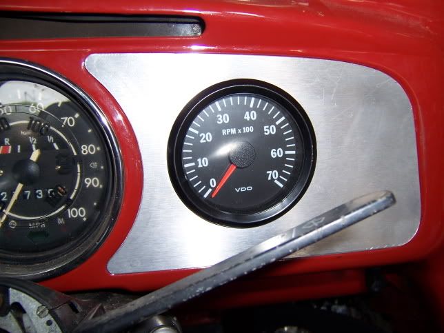http://www.vwbughead.com/interior/kulhdub19.JPG My layout is modeled after Porsche layout. It makes sense to have the tach in the middle for visibility to hit the shift points. Be aware of steering wheel and seat location when planning your gauge location. I have a hard time seeing my speedometer between around 70-80 mph due to my height, seat location/height, steering wheel, and gauge. Same problem with the oil temp gauge... The steering wheel will always block something, its a matter of deciding what is least important to see at a glance. I have a loud buzzer connected to my idiot lights for extra insurance (not active when engine is off). What gauges are you considering? |
