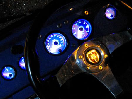 CHT, Tach, Fuel Level, Speedo, (top 2) Boost/Vac, Water Temp, (bottom 2) Oil press, oil temp. I wasn't sure about using all the guages but I figured I had them, I should just use them. :rolleyes: I still might change out the CHT. Like my racing wheel in the last picture? :laugh: |
