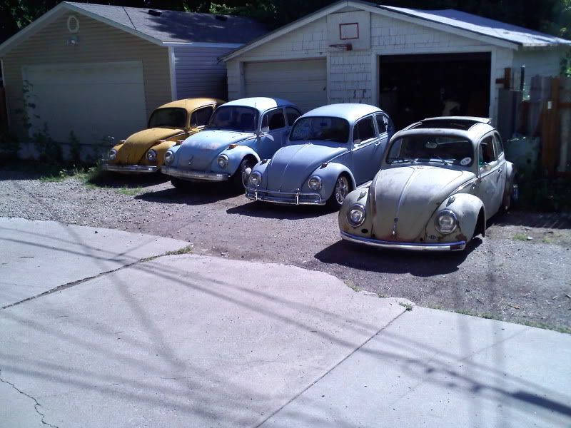 http://i27.photobucket.com/albums/c1...5.jpg~original http://i27.photobucket.com/albums/c1...3.jpg~original heres me and my roomates line up of just our bugs. from left tp right -75 standard, parts car -74 super, mine -67 bug, my rooates with all the gard to find cal look goodies. its got a 1915cc motor, OG empi GVT steering wheel, OG gene berg shifter, drop spindles, 2 inch narrowed, build trans. its your avrave cal look that all the cali guys drool over! -58 ragtop, my car. there is also a 67 bug thats also my roomates that where redoing, and two busses also not pictured that are as well my roomates. AND my choptop too....think we have an obsession??? LOL http://i27.photobucket.com/albums/c1...6.jpg~original |