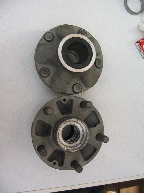 Pre 85 944 N/A hubs, modified for beetle spindles. These use standard beetle bearings but a thinner grease seal, available from most bearing places. Spot faced stock drum spindles. This is important, others ARE different. Be aware. There is loads of alternative methods on GermanLook. http://i61.photobucket.com/albums/h6...6.jpg~original And the front machining http://i61.photobucket.com/albums/h6...7.jpg~original Fitted with bearing adapters http://i61.photobucket.com/albums/h6...4.jpg~original http://i61.photobucket.com/albums/h6...5.jpg~original Machining Diagrams: BEETLE spindle, PORSCHE hub stock (all from Ricola's website) http://www.ricola.co.uk/images/Speed...s.gif~original Bearing adapters http://www.ricola.co.uk/images/Speed...s.gif~original PORSCHE hub mods http://www.ricola.co.uk/images/Speed...s.gif~original Caliper adapter plate - wider holes are tapped M12x1.50 http://i44.photobucket.com/albums/f3...0.jpg~original http://i61.photobucket.com/albums/h6...0.jpg~original |