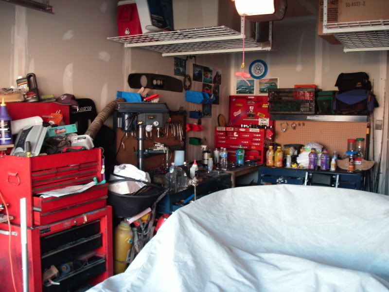 2 car+ garage filled with stuff, pretty much sums it up. I rent a room in the house and am privileged with a corner of the garage. Yep full http://i93.photobucket.com/albums/l4...5.jpg~original My corner http://i93.photobucket.com/albums/l4...6.jpg~original Tool chest, and a metro rack full of parts behind it http://i93.photobucket.com/albums/l4...9.jpg~original The mad scientist engine creation work bench http://i93.photobucket.com/albums/l4...7.jpg~original The rest of the garage: scuba and fire gear on the left, audio gear on the right http://i93.photobucket.com/albums/l4...0.jpg~original Electronics work benches, currently occupied with server hardware. We got enough bits and bobs to do just about anything. Full electronics components bins and metric hardware bins. http://i93.photobucket.com/albums/l4...1.jpg~original http://i93.photobucket.com/albums/l4...2.jpg~original more audio gear and landlords toolbox http://i93.photobucket.com/albums/l4...3.jpg~original http://i93.photobucket.com/albums/l4...4.jpg~original This is why all my car work is done in the driveway, but at least I can do my motor work in the dry :D Now let's see the rest of yours! |