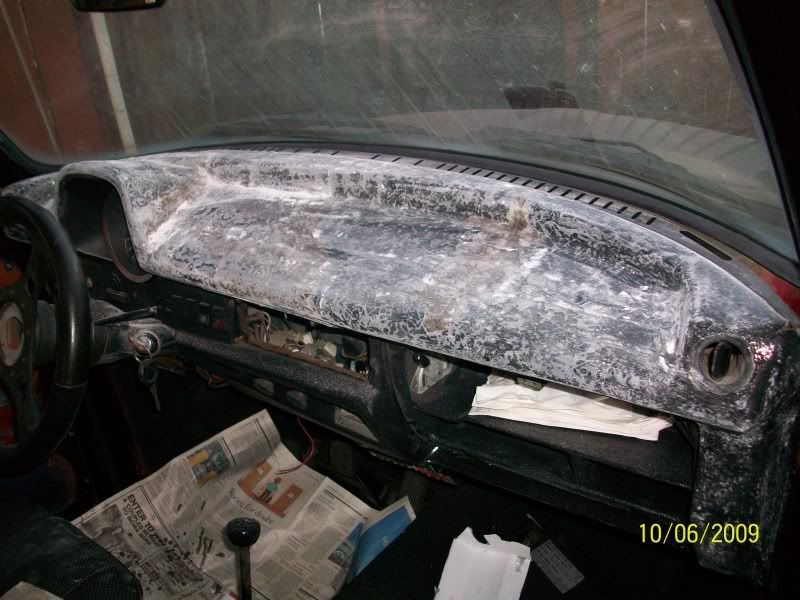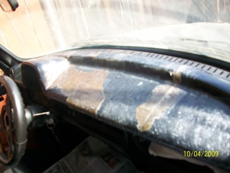 I decided to fiberglass my dash board since it had many weather cracks, It was kind of an eye sore to look at while driving. I scrapped most of the vinyl off and applied the fiberglass.