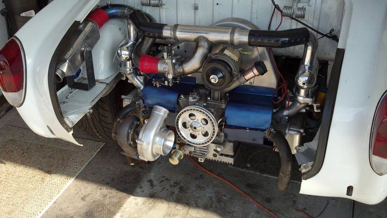 http://i586.photobucket.com/albums/s...p.jpg~original of course, it is nothing like the 901 that was in there and the old rear of the car has to be redone to fit this monster in there http://i586.photobucket.com/albums/s...e.jpg~original http://i586.photobucket.com/albums/s...v.jpg~original Some new 930 CV's and axles and stubs are in order http://i586.photobucket.com/albums/s...u.jpg~original I went out and did some parking lot stuff and found that without a posi in the car, it would just burn the inside tire going around any corner, so the motor and trans had to come out again to get a new LSD put in.... and the car got cleaned up and a few things done to it http://i586.photobucket.com/albums/s...1.jpg~original http://i586.photobucket.com/albums/s...y.jpg~original http://i586.photobucket.com/albums/s...0.jpg~original Here is a video of it on the dyno:::::::::::::::::::::::: https://www.youtube.com/watch?v=m52kBy7a6fc |