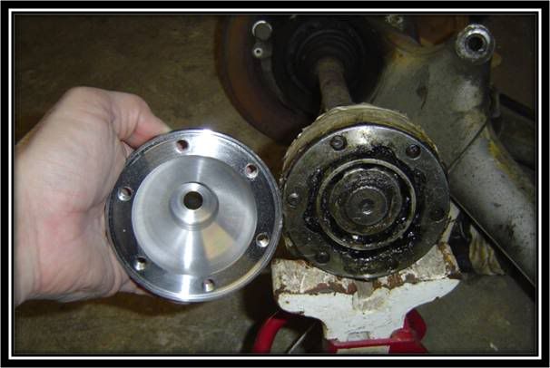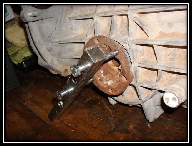 http://i78.photobucket.com/albums/j1...8.jpg~original With Nose Cone removed, now is a good time to remove the speedometer drive gear Two approaches (1) Use a hacksaw and cut (Not best approach) or (2) Remove Expansion bolt (held in place with (80-87ft/lbs) and decouple drive gear (Better approach) Slide 29 Getting Started (Partial Disassembly) http://i78.photobucket.com/albums/j1...2.jpg~original http://i78.photobucket.com/albums/j1...2.jpg~original The Expansion bolt is size 32mm, and will require that you lock the gearbox down in order to utilize an impact drill to remove. There are many methods to locking the gearbox, one such method is to utilize an old clutch disk, using some one inch stock and a few bolts (See side picture) Slide 30 Getting Started (Partial Disassembly) http://i78.photobucket.com/albums/j1...a.jpg~original http://i78.photobucket.com/albums/j1...b.jpg~original Once expansion bolt is removed from, you will notice that the speedometer drive gear is secured via a small pin To separate remove lock pin Slide 31 Getting Started (Partial Disassembly) http://i78.photobucket.com/albums/j1...a.jpg~original http://i78.photobucket.com/albums/j1...b.jpg~original The Bug@5-Speed Nose Cone and Front Traverse are shown on the right. With the reverse gear shaft installed and locked in, you can attach nose cone to the intermediate plate and gearbox. Be sure to replace the factory gasket or utilize a liquid gasket to create a good tight seal Secure to gearbox with the self-locking nuts and washer Torque 13mm nuts to 18 ft/lbs (Per Porsche Manual |