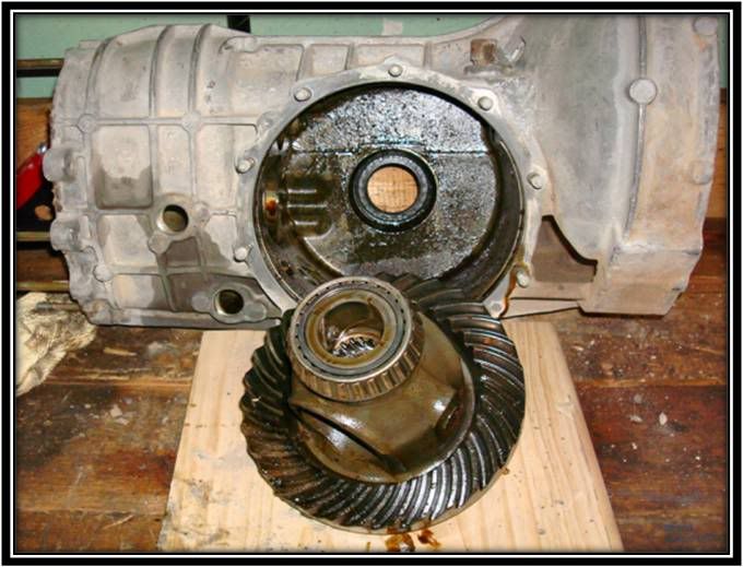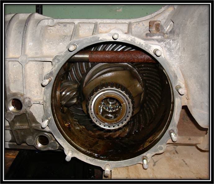 http://i78.photobucket.com/albums/j1...9.jpg~original Drain oil via two plugs on the side of the gearbox (17mm Hex Drive) Lower plug is magnetized to capture filings It is a good idea to inspect this plug to have an initial idea of condition of internals Slide 20 Getting Started (Partial Disassembly) http://i78.photobucket.com/albums/j1...a.jpg~original http://i78.photobucket.com/albums/j1...b.jpg~original http://i78.photobucket.com/albums/j1...c.jpg~original Removing Flanges Utilizing 1 inch square stock special tool is made to prevent flange from spinning Bolt on flanges are size 19mm and are referred to as diff expansion bolts Slide 21 Getting Started (Partial Disassembly) http://i78.photobucket.com/albums/j1...1.jpg~original The differential side cover/plate is secured by 13mm sized nuts Removing of the side cover is necessary in order to flip the differential This is necessary on the 914 gearboxes due to the 914 boxes being set up for mid engine configuration Failing to due this will yield one fwd gear and 5 reverse gears Slide 22 Getting Started (Partial Disassembly) http://i78.photobucket.com/albums/j1...2.jpg~original Side Cover removed exposing a poorly maintained gearbox This is not what you want to find With cover removed it becomes evident that in order to remove the diff, the pinion shaft and main shaft will have to be removed Slide 23 Getting Started (Partial Disassembly) http://i78.photobucket.com/albums/j1...a.jpg~original http://i78.photobucket.com/albums/j1...b.jpg~original http://i78.photobucket.com/albums/j1...c.jpg~original Few more items that need to be removed to enable the intermediate plate, and gear stack to be pulled away from the case to access diff Unbolt 2 13mm nuts to removed side cover plate; freeing inner shift rod Removed reverse gear switch and pin |