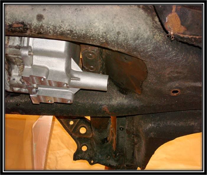 http://i78.photobucket.com/albums/j1...a.jpg~originalhttp://i78.photobucket.com/albums/j1...b.jpg~original Few more pictures of clearance for Clutch Cable Adaptor Plate Slide 54- Type I IRS Chassis Prep http://i78.photobucket.com/albums/j1...4.jpg~original Once all the clearances have been cut into the frame horns, this is what your chassis should look like. 1-Clearance for the intermediate plate 2-Clearance for shifter cable adapter plate & Bowden tube 3-Clearance for TOB fork 4-Clearance for reverse gear switch (optional) Slide 55- Type I IRS Chassis Prep http://i78.photobucket.com/albums/j1...5.jpg~original Gearbox is situated between frame horns to begin marking area to be cut for the inner shift-rod that will enter tunnel in the new location Slide 56- Type I IRS Chassis Prep http://i78.photobucket.com/albums/j1...6.jpg~original Using a wire wheel, area to be cut was cleaned to enable marking of the necessary patter for the shifter coupling to fit through the tunnel: Porsche Shifter Coupling requires hole cut to 60mm x 120m If using a VW Shifter Coupling it requires hole cut to 70mm x 120mm, due to larger size Slide 57- Type I IRS Chassis Prep http://i78.photobucket.com/albums/j1...7.jpg~original Once the hole is cut this is where the shift rod will enter tunnel. Notice the Porsche Shifter coupling Slide 58- Type I IRS Chassis Prep http://i78.photobucket.com/albums/j1...8.jpg~original With shifter coupling hole cut, its now time to center our attention onto the front traverse, and the IRS mounts which serve as the mounting point for the gearbox Slide 59- Type I IRS Chassis Prep http://i78.photobucket.com/albums/j1...a.png~originalhttp://i78.photobucket.com/albums/j1...b.jpg~original With the gearbox installed with the front and rear traverse, we will mark the location for the bolts to attach to the IRS mounts. |