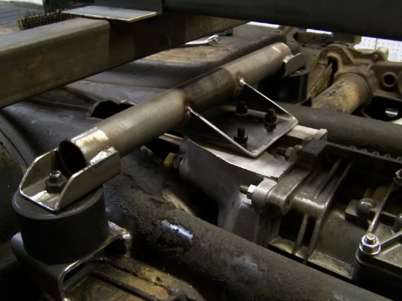 Well, since the forums are back up I can post some progress with tranny install. I got some parts from bug@5speed, but didn't get the transverse mount, because, looking at the mounting points it would not work with the 944 sway bar i'm going to use. So, I got some volvo 240 motor mounts, and some metal I had lying around and came up with this.