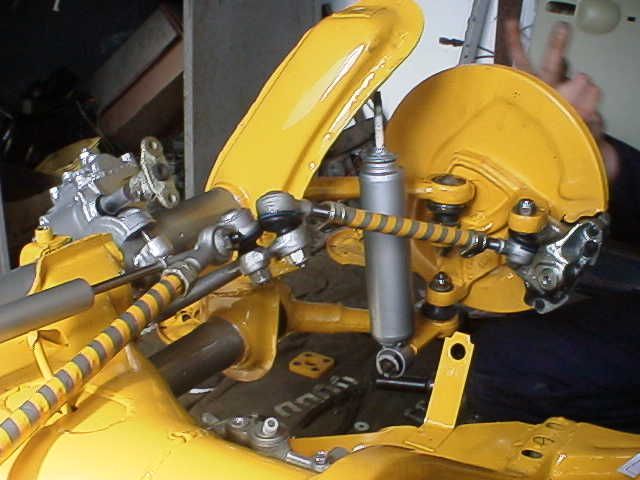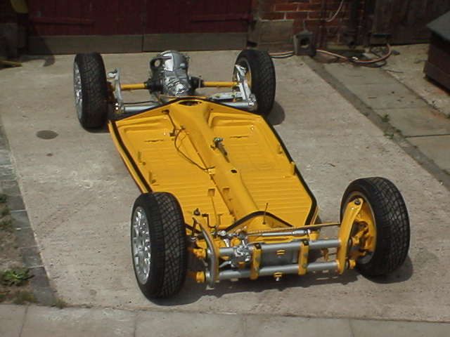 Just noticed the pics of your car in the members rides. Very nice. Love the details in both the body work and floor pan. I'm about to powder coat my floorpan. Red and silver. I was wondering how you did the contrasting colors, yellow and silver, on your front beam. Is it painted, or powder coated? Doing different colors on either side of the shock towers must have been tricky. I can't make out the color of the tie rods. Are they silver or yellow? I'm planning on silver my self. Did you paint/powder coat the steering box and master cylinder? I'm not sure if these pieces will stand up well to the heat of powder coating so I plan to use black POR 15 on them (and the ball joints). My rear suspension will be all silver (like yours) with a bit of chrome here and there. On the interior the pedal assembly and emergency brake lever will be silver, as will be the roll cage. If your have any more pictures of the details I'd appreciate a look at them. Thanks. Again, kudos on such a clean looking car. Carl