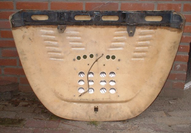 I bought a glasfiber rear decklid secondhand. It allready had the inner frame from a normal metal decklid glassed in: