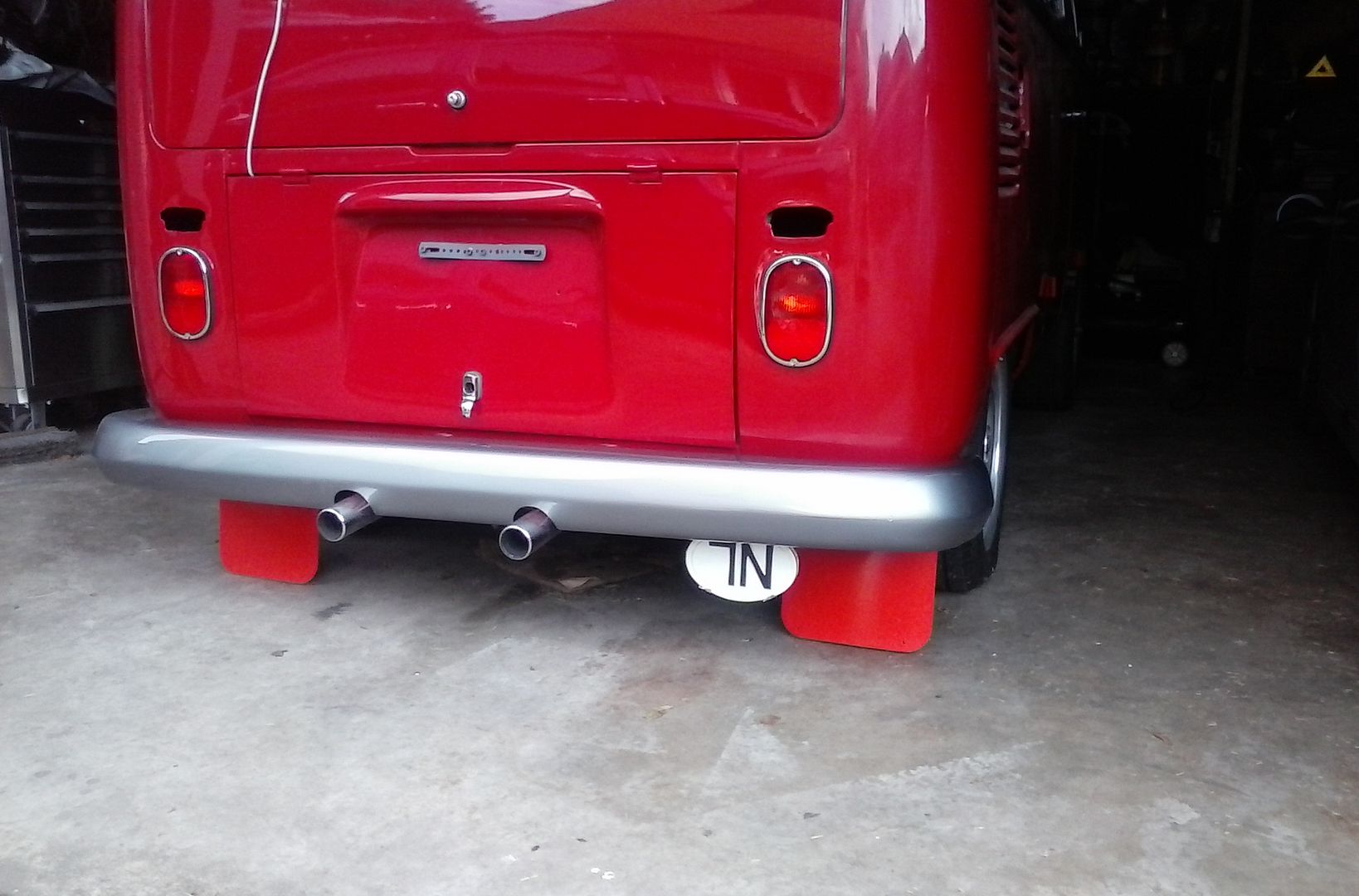Putting all the parts and pieces back on her still. Got the bumper on and I had to adjust it four times. When I did the IRS swap it shifts the engine down and to the drivers' side about 10mm. I didn't think much of it until the tailpipes didn't line up with the cutouts (those were cut back when it was S/A).