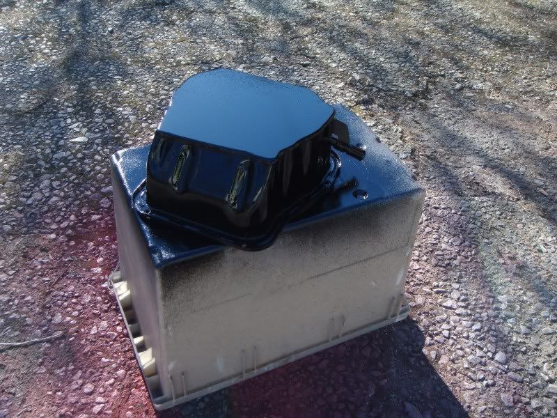 http://i7.photobucket.com/albums/y25...3.jpg~original Painted valve covers and intake manifold.:) Chopped oil pan and pickup tube. Installed Innovative LC1. I can almost hear it running:lmao: |