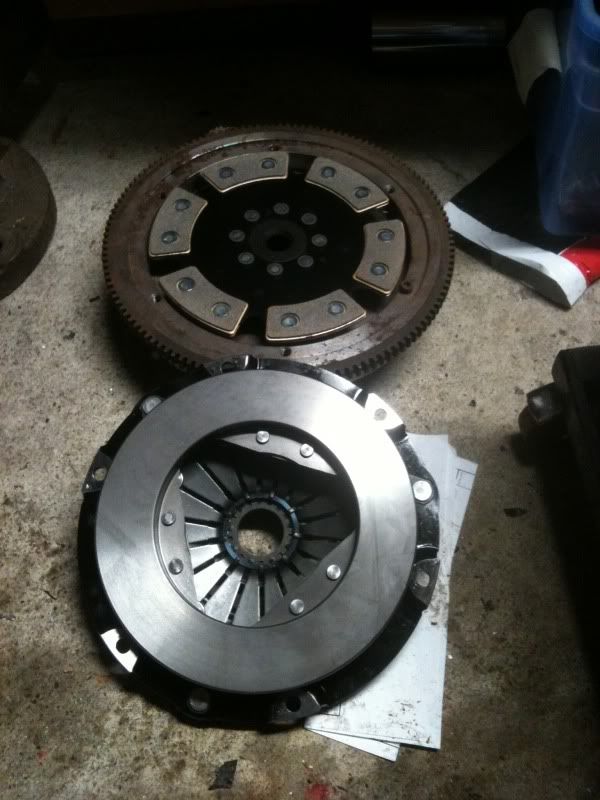 Installed clutch and pressure plate. Didn't know I had to remove the donut thingy on the pressure plate so I have to pull the engine again. Installing it by yourself can be quite painful on the back:shocked: