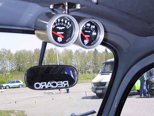 I'm trying to keep the dash simple, so originally inteded to make a nice custom bracket for the rearview mirror and put these gauges there, similar to this: http://i110.photobucket.com/albums/n...5.jpg~original I did the wiring too, but the wire harness seems to be too wide to make it invisible..at least need more time for that project. I wanted to drive the car ASAP and found a gauge holder in the garage that doesn't fit in the radio area. Again, I'm sure I will not put them there as I'm not a fan of the space shuttle style dashes. Will cover the hole with a c/f plate or similar and try to find a good place for the gauges. (Maybe under the dash?) Regarding the stance the back is a tad lower than I wanted (hard to set the TB bars without the full interior). I'll see how it performs in city driving & on speed bumps than will raise a spline later if needed. But no rake at all. |