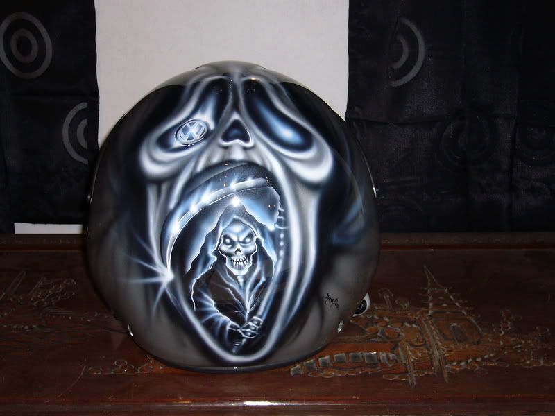 I also received my airbrushed helmet this weekend. Thumbs up to Maria Elena for great work!
