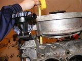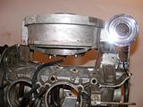 Just above/besides the oil pump. My set-up sat on an original converted 914 2.0 engine and had a piece of engine tin around the crank pulley, probably to resemble the type 1 surround tin around the pulley for engine bay air sealing. So I strongly think it was meant to mount onto some extra tinware and seal the engine bay from hot air radiating from the exhaust. Hope you understand what I am trying to say.. Greets, Walter PS: sorry Sandeep to deviate from the original topic (NOT! :D) |
