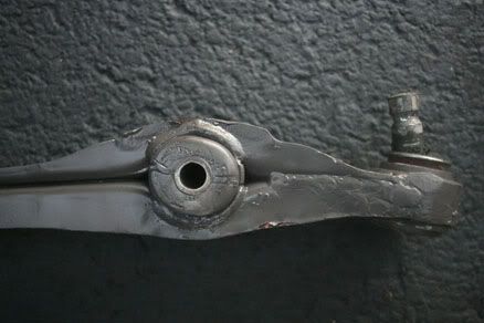 yeah, that arm's done. luckily they didn't try to remove the second ball joint. nothing on my car had been replaced since '79, including the brake lines, so i'm sure the ball joints have never been off.