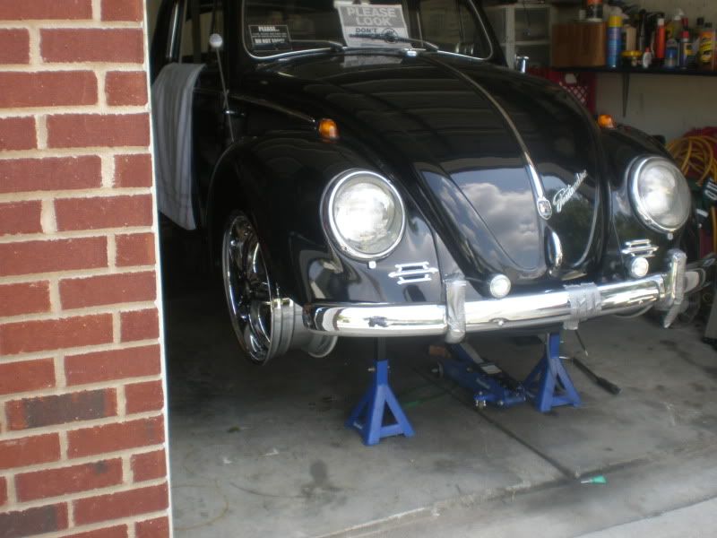 After losing a major contract my company suffered a variety of set backs, I had to sell the Superbeetle. A year goes by and back on solid ground I went in search of another Super, but I came across a 1963 that was just too good to pass on. Up until now all my research and parts gathering had been toward building a 74 Super GL, so now I had to sort of start over again. I found that if I switched to the later model balljoint front end and a I.R.S. I could use the parts that so far I had spent the most money on, the braking systems. Now on to specs and Pics: 1970 original pan w/ one dime size hole in battery tray area, stripped, por-15 top and bottom http://i11.photobucket.com/albums/a1...5.jpg~original http://i11.photobucket.com/albums/a1...4.jpg~original Bullet proof Front end: 4 in. narrowed beam from airkewld.com, then I added the steering damper mount and turn stop bracket from the original beam Tar-ox 6 pistons disc brakes front drilled and stud to 4.5x5 at vdubengineering, then cryod,slotted and dimpled at frozenrotors,I painted the rotors, the calipers came in red, steel braided brake lines,new steering box, Superduty narrowed tie rods from vdubengineering, new tie rod ends, and new lowered balljoints http://i11.photobucket.com/albums/a1...0.jpg~original http://i11.photobucket.com/albums/a1...1.jpg~original Rear end: Reconditioned and painted stock trailing arms, all rubber replaced with urethane Cb performance rear disc brake, drilled and stud at vdubengineering, then cryod,slotted and dimpled at frozenrotors, I painted the calipers and rotors http://i11.photobucket.com/albums/a1...7.jpg~original Wheels and tires: D'vinci Attivo's front 18x7.5, ET.43mm, 215/35/18, rear 19x9.5 ET. 30mm, 265/30/19 http://i11.photobucket.com/albums/a1...9.jpg~original http://i11.photobucket.com/albums/a1...7.jpg~original http://i11.photobucket.com/albums/a1...8.jpg~original http://i11.photobucket.com/albums/a1...3.jpg~original Interior: Momo steering wheel, AutoMeter UltraLight II gauges. http://i11.photobucket.com/albums/a1...5.jpg~original Soon to come: I really like the new Stealth seat by Scat series 1615. Check it out! http://www.procarbyscat.com/new_releases/stealth.html The only major change to the body was to add 3 in wider fenders from CCC. I had to redrill new holes in the bumper bracket in order to slide the bumpers rearward 40mm. I wanted big fenders and a rear bumper. This also cleared up some clearance issues I was having with the W decklid that Im using. Other changes were very minor such as script emblem on hood from volkswagen to street machince, fog lights, etc. By the way the car has a factory 3 fold ragtop, sorry none of the pics show it. The cover is black canvas. http://i11.photobucket.com/albums/a1...1.jpg~original Engine: Right now all I know is that it will be a 2 ltr. plus aircooled vw. Type 1 or 4 is still up in the air. Dream engine is a Type 4 2563cc. Go big or go home. But I haven't hit the lotto yet. I put together a slide show of the build so far. Check it out. Dial up user beware, file is not small. High speed user are up and running in now time. http://s11.photobucket.com/albums/a1...t=927e80ce.pbr |