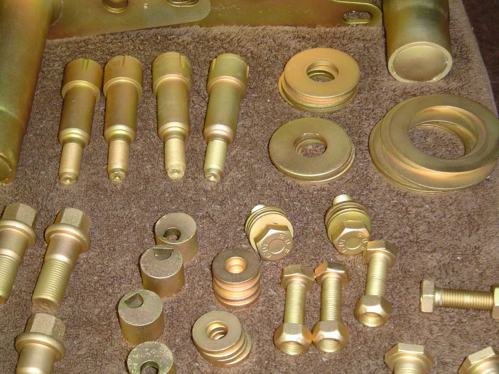 You make a good point and after receiving my parts, I have to question the approach.. Unfortunately I was in a rush, and did not ask enough about the Zinc gold plating, as far as thickness, penetration and such.. The parts came back clean and coated which I must say is nice to have clean parts. I am unsure if I want to clear coat the spring plates to add protection, I definitely will use some kind of synthetic lube to cover the bushing and the shims.. Enough talk here is what the parts look like.. And for those that wondered what the spring plates look like naked "auto pron" here they are in all their glory.. :) When time permits I think I will wrap up an article on the spring plates as I have taken a lot of pics.. http://i78.photobucket.com/albums/j1...1.jpg~original http://i78.photobucket.com/albums/j1...0.jpg~original http://i78.photobucket.com/albums/j1...9.jpg~original http://i78.photobucket.com/albums/j1...8.jpg~original http://i78.photobucket.com/albums/j1...7.jpg~original The Parts lot that I got plated and focusing on for now..I have the plates mounted for test fitment, and pics but my camera did not charge up and the batteries are dead, so I owe everyone those.. http://i78.photobucket.com/albums/j1...6.jpg~original http://i78.photobucket.com/albums/j1...5.jpg~original Let me know what you think VR ALex |