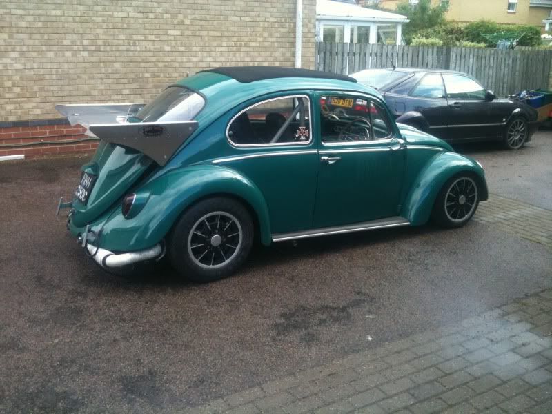 my cars not german look or Cal Look but has bits of both some of you may have seen my car on other forums so fingers crossed not to boring lol Specs so far Engine 2332 turbo, efi, NOS, water injected, charge cooled T1 Transmission T1 pro street Wheels OG Bruners Brakes 944 Turbo with 928 4 pots Interior 70s 911 tombstones and a few gauges :D ive done all the work on the car myself starting from this Ok i purchased this bug for my wife in 2007 and looked like this http://i71.photobucket.com/albums/i1...xer/heidi3.jpg i wanted her to stay like this but claire wanted me to lower her so she then looked like this http://i71.photobucket.com/albums/i1...r/DSC00080.jpg so that was it the car has been messed with so i took this out http://i71.photobucket.com/albums/i1...r/DSC00430.jpg and put this in 2332cc CB high roof case, Scat crank 84mm, CB H beam rods, 94mm B+P, Total seal rings, Engle FK10 cam, Scat lifters, Berg chromoly pushrods, Jaycee pushrod tubes, Scat 1.4 rockers, A1 1 3/4 Sidewinder exhaust ceramic header and stainless back box Vband clamp , Deep sump, Jeff Denham welded heads 44 x 37 valves heavily reworked with matching manifolds, Berg linkage, Fuel injection kit-CB throttle bodies, DTA . Gearbox by Cogbox close 1,2 and 3 gears tall 4th for cruising all welded gears heavy duty side plate, superdiff Sway away short race axles. http://i71.photobucket.com/albums/i1...h_MOV00001.jpg then to stop i made these fit http://i71.photobucket.com/albums/i1...r/DSC00303.jpg http://i71.photobucket.com/albums/i1...r/DSC00301.jpg http://i71.photobucket.com/albums/i1...r/DSC00680.jpg so all is going well then i find loads of the ginger stuff bottom of door, some in the wings and heater channels. I found some NOS 65 doors and got hold of some day mouldings wings and painted them then started on the channels http://i71.photobucket.com/albums/i1...r/DSC00079.jpg http://i71.photobucket.com/albums/i1...r/DSC00081.jpg http://i71.photobucket.com/albums/i1...r/DSC00083.jpg http://i71.photobucket.com/albums/i1...E_SBF_1903.jpg http://i71.photobucket.com/albums/i149/gluemixer/27.jpg http://i71.photobucket.com/albums/i1...r/DSCN2429.jpg http://i71.photobucket.com/albums/i1...r/DSC01007.jpg http://i71.photobucket.com/albums/i1...r/DSC01003.jpg http://i71.photobucket.com/albums/i1...r/DSC01005.jpg now looks like this http://i71.photobucket.com/albums/i1...9.jpg~original http://i71.photobucket.com/albums/i1...2.jpg~original http://i71.photobucket.com/albums/i1...4.jpg~original http://i71.photobucket.com/albums/i1...6.jpg~original http://i71.photobucket.com/albums/i1...9.jpg~original im fitting a G50 over the winter so watch this space cheers andy |
