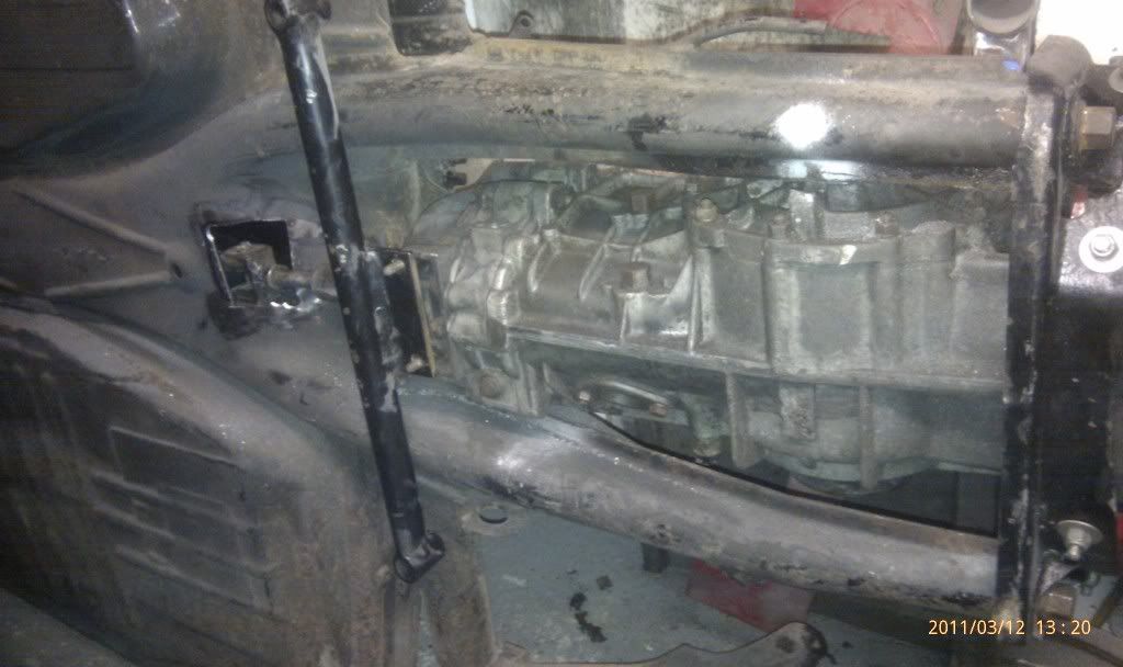 Fitted the car's old engine case and basic tinware to gauge the gearbox position since with the body back down it looked a bit wrong: