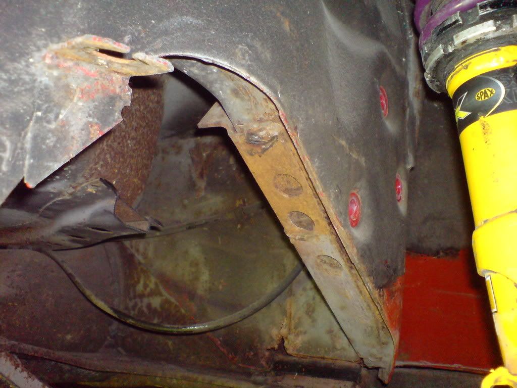 Thanks for your interest and comments guys. All in all i have raised the engine and box 2.5 inches and moved it forward 1.5 inches to keep the driveshafts tru. the cam wheels have come outside the body work but the sump and exhaust are no longer dangerously close to the floor, which was the plan as in gonna run this car low. I will be making a subframe in the rear end which will help with strength but also provide mountings for the coilovers and the rear end bodywork. heres some more pics of how the box sits in the bodywork. Gotta love that rust repair rich ive cut out half the work i did to get my shell solid LOL.:lmao: