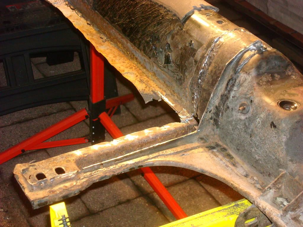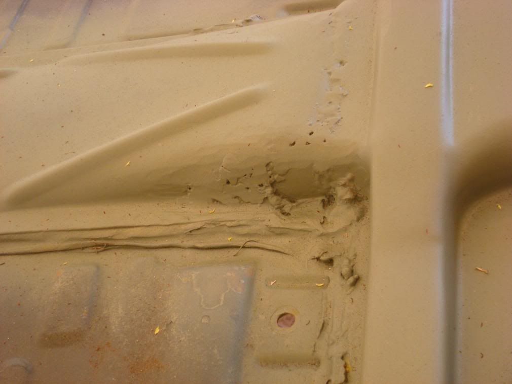 http://i78.photobucket.com/albums/j1...7.jpg~original Still haven't given up faith on this chassis, I have gone over "Racelooks" thread over at Shoptalk, from which I got a few good ideas. As you can see I started to clean up the tunnel bottom, the cancer seems isolated at the location where the pan head and tunnel meet. http://i78.photobucket.com/albums/j1...2.jpg~original And a closer look, other side is similiar but not as bad http://i78.photobucket.com/albums/j1...1.jpg~original http://i78.photobucket.com/albums/j1...4.jpg~original http://i78.photobucket.com/albums/j1...3.jpg~original Rest of the front third of bottom of tunnel looks to be pretty solid http://i78.photobucket.com/albums/j1...3.jpg~original As fell as the front half of the pan head.. |