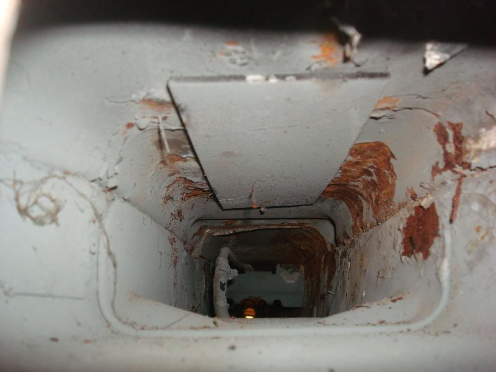 Here is a crude attempt in using power point http://i78.photobucket.com/albums/j1...1.png~original First I will replace only the portion in red from the lower half of the pan head, as well as the napolean top portion. Then with some equal guage/thickness sheet metal, form it to the tunnel an path those area.. that need help.. http://i78.photobucket.com/albums/j1...2.png~original Last one for tonight of the carnage http://i78.photobucket.com/albums/j1...1.jpg~original Its had to tell but if you look into the hole, there is rust where the top half of the pan head and the napolean top meet.. This may be tricky, but we will see.. At this point welcome ideas, suggestion.. or any comments.. I thought about getting a new chassis, but this doesn't seem to be fatal.. Once all buttoned up, I was planning on putting extra plating over this area, and welding it, to ensure its strong.. Take care Alex |