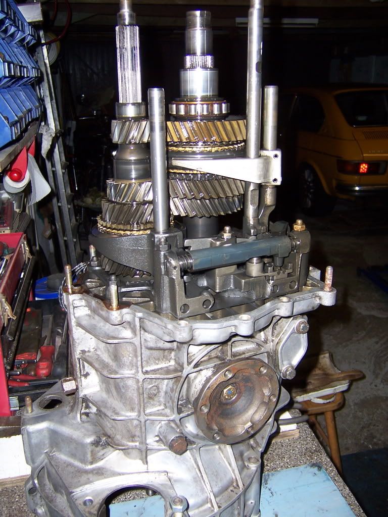I will go full VW clutch probably. I found a Luk hydraulic one from a VW/Audi that is lower than the Saab unit, which I also found. The Saab one can be shortenend some and is nicer though. This is what I'll use as a pressure plate: http://i174.photobucket.com/albums/w...1.jpg~original http://i174.photobucket.com/albums/w...4.jpg~original The tranny is almost dismantled: http://i174.photobucket.com/albums/w...2.jpg~original http://i174.photobucket.com/albums/w...0.jpg~original |