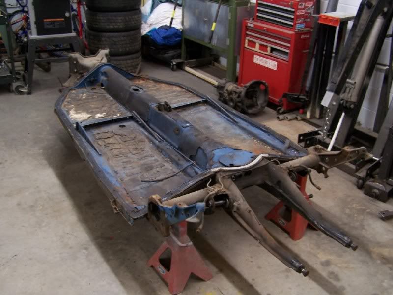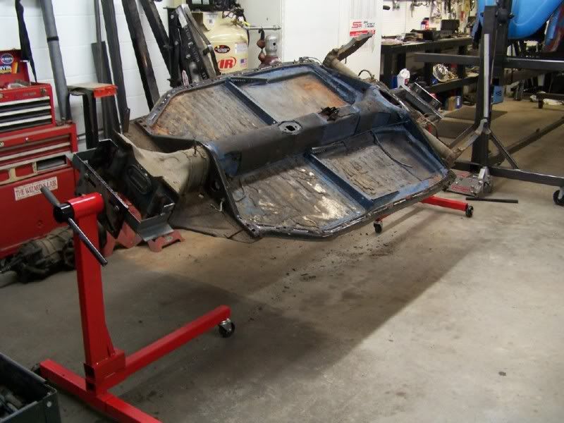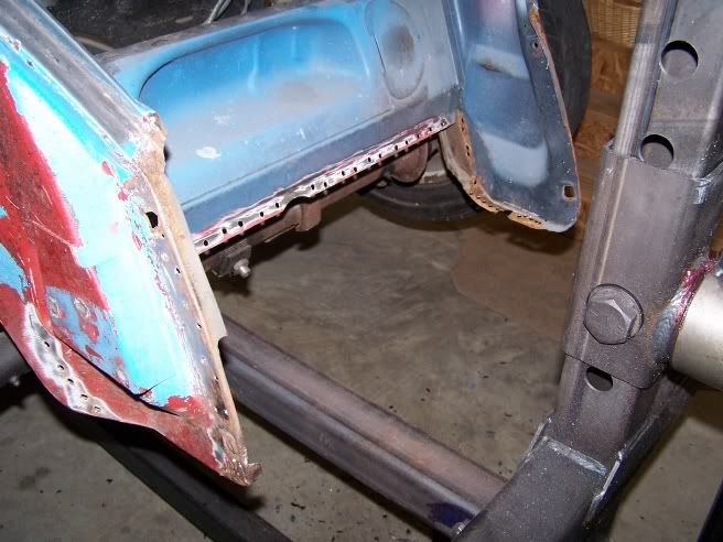 Wow, this is the longest period in time I have been able to work on my project (in the same year!). Some more was done today. Had some small areas of rust on the mounting lip, but took care of it already. The new pans needed some stuff removed (seat rails, battery mount, and rear bracing) Had to remove the jack point to get the rear brace off (hidden spot welds), and will weld it back on later. Ran out of time to prep the drivers side pan though. But, there is still progress being made!!