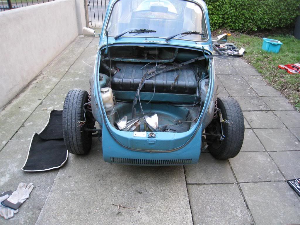 Its a 1973 1303 with a 1300 engine , it says 1303s on the decklid but ive been told its not a "S" . got lots of time on my hands. ive been on the eircooled.com forum but was told to go here cause you guys know everything and anything about converting a superbeetle to German Look never done this before so im going at it as a newbie ah ive got so many questions. so ill let the pictures do the talking , to get me to where i am. This is how i got the 2 years ago in manchester, http://i498.photobucket.com/albums/r...8.jpg~original http://i498.photobucket.com/albums/r...7.jpg~original http://i498.photobucket.com/albums/r...6.jpg~original http://i498.photobucket.com/albums/r...2.jpg~original this is where i am at now , fenders off interior out glass out http://i498.photobucket.com/albums/r...8.jpg~original http://i498.photobucket.com/albums/r...8.jpg~original got a bit of rust here ... http://i498.photobucket.com/albums/r...8.jpg~original http://i498.photobucket.com/albums/r...d.jpg~original http://i498.photobucket.com/albums/r...e.jpg~original http://i498.photobucket.com/albums/r...0.jpg~original http://i498.photobucket.com/albums/r...0.jpg~original http://i498.photobucket.com/albums/r...0.jpg~original so thats that part sorted, :) next up im looking at going from this http://i498.photobucket.com/albums/r...e.jpg~original to this http://i498.photobucket.com/albums/r...0.jpg~original |