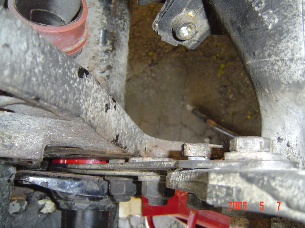 Now, in my case I fixed it with plastic spacers, like the ones described by Alex, but that lead to another problem: Using one 2mm spacer on one side, and 2mm on the other side, gives you 4mm more length between the 2 anti-roll bar mounting bolts, which are on the spring plates. So, the anti-roll bar is now 4mm shorter. I didn't realise that, and I mounted it just like before, ofcourse tensioning it by 4mm. That lead to the anti-roll bar pulling one of those little bushings out, and setting it free after only a few hundred kilometers. So, if you are going to use spacers, go ahead and use the same width on the anti-roll bar mounting bolts also! |