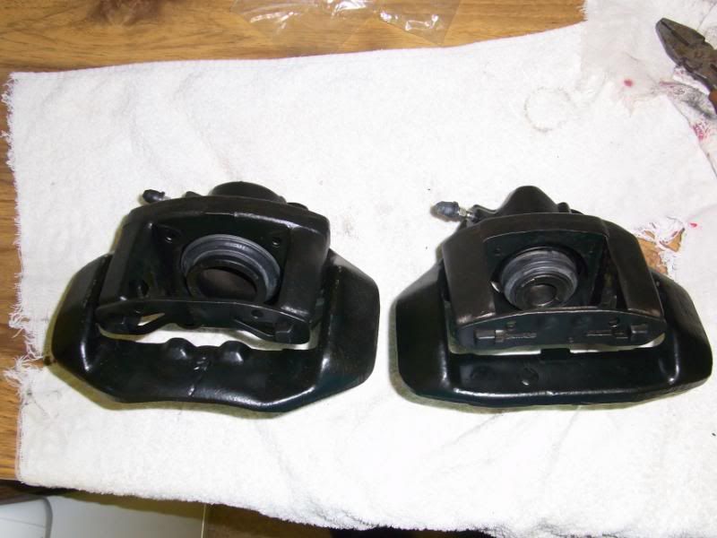 http://i61.photobucket.com/albums/h6...9.jpg~original To this http://i61.photobucket.com/albums/h6...8.jpg~original My cylinders were honed and the pistons cleaned and oiled. Bodies were stripped and painted in Smoothrite and the bleed and feed cleared out before starting the assembly. (thanks Dad!) Learn here from me, its easier to assemble the pots and carriers together before putting the pistons in, but make sure that the second part of the calliper goes on last. Easy on the fronts because they are separate. On the rears assemble this bit last as shown below. Parts are available at good prices from Pelican Parts and I have some brand new pad fitting kits (for later!) from them too. You'll need a caliper rebuild kit (rear kit shown), some brake fluid and optionally rubber grease http://i61.photobucket.com/albums/h6...1.jpg~original http://i61.photobucket.com/albums/h6...8.jpg~original http://i61.photobucket.com/albums/h6...0.jpg~original Fit the pots into the carriers, they are a friction fit. Best method is get them started and then knock the assembly on some old carpet on the floor with your weight on the pot to drive it home. Remember that the bleed nipple in every instance goes on the curved side (top) of the carrier. A later picture but it shows how it is oriented (rear pictured). http://i61.photobucket.com/albums/h6...0.jpg~original --- Get your pistons and cylinders cleaned with some degreaser or the like and make sure that the seal groove is well cleaned too. http://i61.photobucket.com/albums/h6...5.jpg~original Fit the dust seal to the piston http://i61.photobucket.com/albums/h6...7.jpg~original Then get the straight seal into the bore and straight in http://i61.photobucket.com/albums/h6...9.jpg~original Rub some brake fluid all over the bore and the piston surfaces to ensure full coverage, this will also stop any rust forming if they are being stored before using. I smeared some rubber grease on here to help the piston ease in http://i61.photobucket.com/albums/h6...1.jpg~original Get the piston in straight and push it home, it'll be tight but that's a good thing. http://i61.photobucket.com/albums/h6...2.jpg~original Then pull the dust seal over the body of the pot... http://i61.photobucket.com/albums/h6...4.jpg~original And fit the split ring to retain http://i61.photobucket.com/albums/h6...5.jpg~original That is job done for the fronts, the rears are slightly different, check the photo at the beginning of the thread. For these you have to install slides and assemble both parts together. --- Pop some rubber grease onto the back of the slides to help them stay put, this part is tricky http://i61.photobucket.com/albums/h6...6.jpg~original Get the calliper upside down as shown, the springs need to line up, you'll see where if you're doing them http://i61.photobucket.com/albums/h6...7.jpg~original Taxing at best, but you need to push down on the other part of the calliper while pushing it over the slides and keeping them in place. You'll end up with them looking like this http://i61.photobucket.com/albums/h6...3.jpg~original Job done. http://i61.photobucket.com/albums/h6...4.jpg~original All ready for these stainless overbraided hoses http://i61.photobucket.com/albums/h6...5.jpg~original |