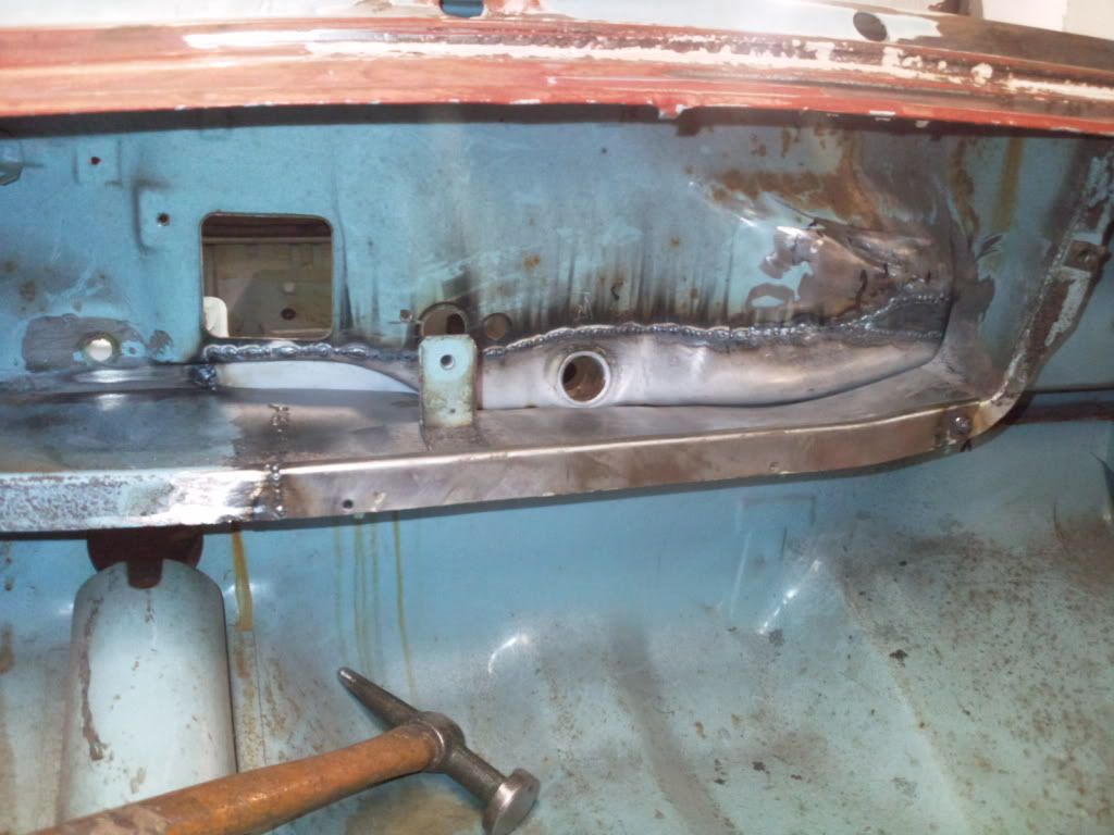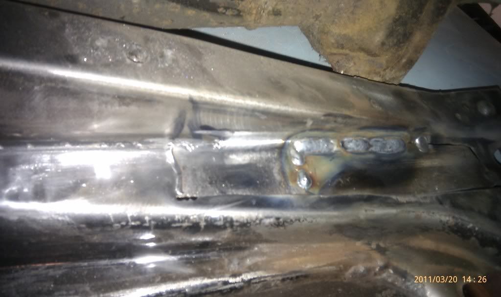 Repaired the floor pan rear brace