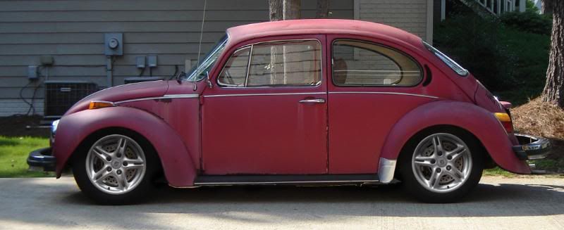Solid car has surface rust but it will paint up nice. I've got the engine out right now cleaning and installing a new muffler. My mods won't start for a while I've got other irons in the fire, '71 Bus(Euro Look) and "Geek" my everyday ride, '64 Type 1 w/Sunroof. I do plan on lowering, Porsche wheels and I'd like to do a Turbo engine, maybe a Type 4. I don't like using wider fenders would like to stick with stock width fenders but still tuck the wheels under there! http://i9.photobucket.com/albums/a56...3.jpg~original A Photoshop mock up using Porsche Split Stars...... http://i9.photobucket.com/albums/a56...2.jpg~original "Geek" Resto Custom http://i9.photobucket.com/albums/a56...s.jpg~original |