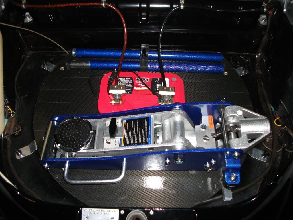 Mine is a combo. Spare hold down, battery hold down and jack mount. I deleted the back seat, moved the battery and added the jack. The weight removed from the back seat area and added to the spare tire area helped the car to bite into corners and the jack looks kind-a cool. The plate is made from carbon fiber over honeycomb core board used for super light weight aircraft cabin flooring.