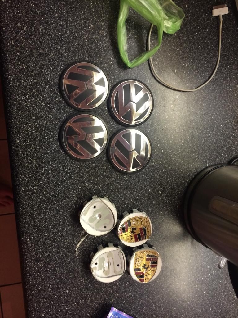 I found a 76mm VW centre cap, got the part number from eBay, then got the dealer to order them in so I could check they would fit. The centre bore of the vw wheel/cap is larger then the Porsche one so the VW cap won't clip in unless you got the wheel centre bored out, having just had the wheel powder coated I wasn't going down this route. So I came up with another solution. http://i16.photobucket.com/albums/b3...e.jpg~original http://i16.photobucket.com/albums/b3...8.jpg~original I couldn't be bothered to remove the wheels to make these. So I stuffed plastic bags into the holes. Used plastic bags as they shouldn't of degraded much by the time/if I ever remove the wheel to take the stuffing out :lol: http://i16.photobucket.com/albums/b3...e.jpg~original http://i16.photobucket.com/albums/b3...a.jpg~original http://i16.photobucket.com/albums/b3...c.jpg~original http://i16.photobucket.com/albums/b3...z.jpg~original The caps appear to be slightly too big but these are a better solution to no caps or having the Porsche ones with an off white paint in a crap attempt to match the wheel colour. |