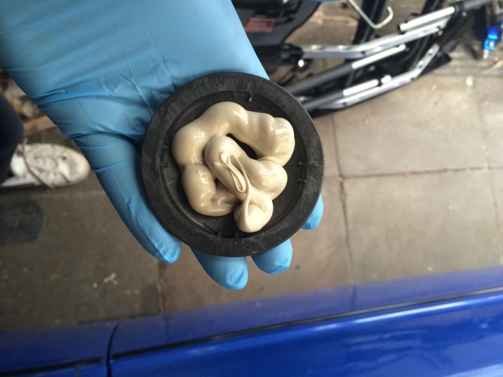 I didn't use so much of adhesive. But as both caps are concave in opposite directions there is a large void to gap hence why it appears there is a lot of gunk. There isn't any over spilling the edges of the caps. Besides, in almost 7 years of porsche wheels the caps only ever where removed to fit tyres. That was once lol