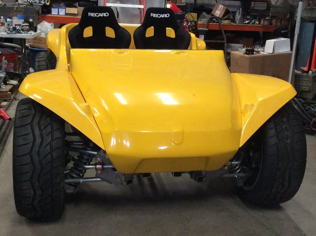 I am going to start a thread on my Meyers Manx project. It was originally purchased to share the build with my 14 year old daughter. When I was 15 I was working and decided to spend my money on a Meyers Manx about 1970. I did however forget to tell my parents. So when the body came to the house it took a couple weeks for them to decide that it could be a cool project with our Dad. I wanted to continue and do it with my daughter. The body took over two years to deliver and by that time she just wanted a car with A/C and windows. The body sat on the top of the pallet rack at the shop for several years then I decided to build it. I started with a Berrian frame and decided to make it a Pikes Peak race car. I bought a set of front and rear suspension from Mendeola and in a sign of the times then it took a very long time to get them. In the mean time I dug out a 930 transmission I had on a pallet from another project. I commissioned a well known Subaru fabricator to build a turbo system that was similar to the set up on the Porsche RSR Turbo from 1973. This fabrication ended up with beautiful welds but some rather interesting lapses of intelligence, like it was all built on a bare block without the front accessories. This meant you could either bolt on the bracket to hold the dry sump system or you could bolt on the factory oil pump that is needed for pressure. So then the other issue became clearance to the harmonic balancer he never used. As a result this engine project was pushed aside as I went back to work to pay for the great job. About the same time, the powers that be decided the car would run in the Unlimited class against the $8 Million Dollar Peugeot that Sebastian Loeb ran at Pikes. Manx out of that race. So in 2015 I pulled it out again to finish it up and put the 2.3 Type IV I had for sale here in it. I will show a bunch of photos from various stages, various seats, various wheels, engines etc. I have learned that time is my enemy as I change my mind more than any woman I know. Also as the years have gone by I have been working hard and suddenly a really cool part comes out. Not that it replaces a crappy part, it's just cooler. So in comes another change. So here are the specs as I hope to roll it out the door before the end of the year. Chassis Berrian chassis with front end and rear frogs cut off, originally to squeeze the 930/Suby in. Mendeola front and rear suspension with Fox coil over shocks OBP Aluminum Pedal group, hydraulic clutch and brake, bias adjustable, cable throttle OBP Drift brake Interior Recaro Profi XL seats Shroth Endurance 6 point belts 996 yellow standard belts Spa Dash Suspension and Brakes Mendeola front and rear suspension Fox shocks Performance Friction 2 piece front rotors Cayman S Brembo rear Cayman S rotors Front and rear 4 piston Brembo Porsche brake calipers Wheels and Tires 996 TT hollow spoke wheels 8 front, 11 rear / 18 inch Tires Falken Azenis front 245 rear 315/18 inch If I think of anything else I will adjust this. I will post pictures as I can off of Photobucket. Thanks Randy |