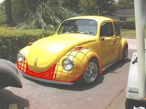 ok so i just want to get things straight here. i was talking strictly about the front fenders only. i just figured that the bolt- arch that the fender bolts to might be exactly the same circumference as the '68-on standard beetle bolt arches. that way they would be a match- although the front bolts would have nothing but the apron to bolt to, at least the look could be achieved.