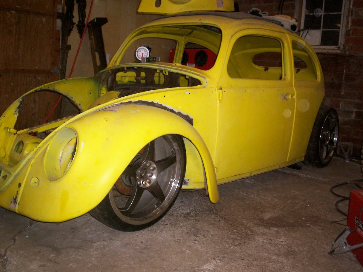 Fake oval rag shell on IRS pan. Car is mostly a 64, and is titled as such. Previous owner welded on an oval rag section, I put in an oval dash and put a rear clip on it (it used to be a drag car). Front suspension is narrowed 7" and rear is narrowed 4". Front end is tubbed (most of the way, still has finishing work needing to be done). Would come with modified front fenders (to match wheel tubs) and hood. Front and rear disc brakes. Fronts are CSP cross drilled ghia rotors, 5x100 pattern. Rears are custom, Rotors off of the front of a dodge stratus(matching pattern) and the calipers are off of the front of a dodge spirit R/T. No rust, but does have lots of finishing work needing to be done. I have most of the glass, and the ragtop frame with a good vinyl ragtop on it. Lots of other odds and ends would go with it. $1800 obo http://i6.photobucket.com/albums/y24...g.jpg~original http://i6.photobucket.com/albums/y24...4.jpg~original |