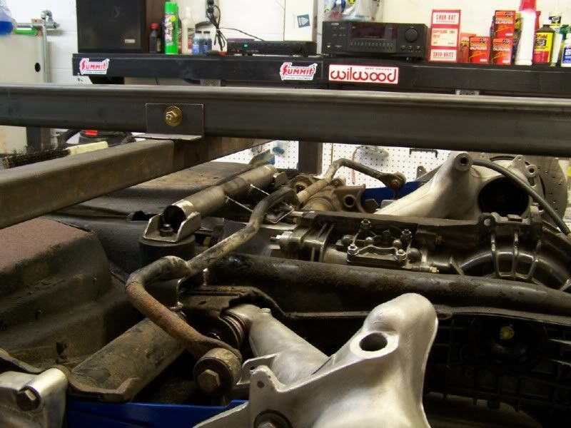 Well, since the forums are back up I can post some progress with tranny install. I got some parts from bug@5speed, but didn't get the transverse mount, because, looking at the mounting points it would not work with the 944 sway bar i'm going to use. So, I got some volvo 240 motor mounts, and some metal I had lying around and came up with this.