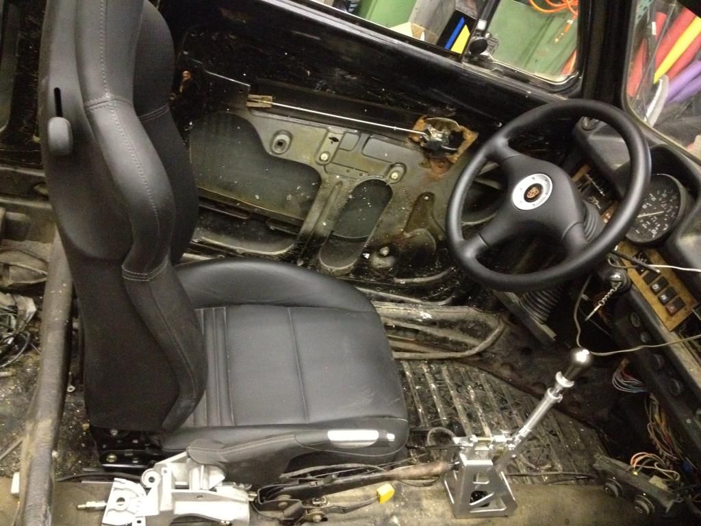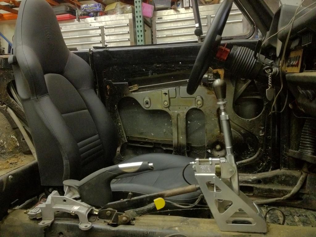 Spent some time fitting things before building the new seat brackets. Checking out the CAE shifter with the 993RS steering wheel and Rennline quick disconnect. Will build a mount and re cable the 944T rear to use the 996 GT3 handbrake. I am happy with the way things will fit.