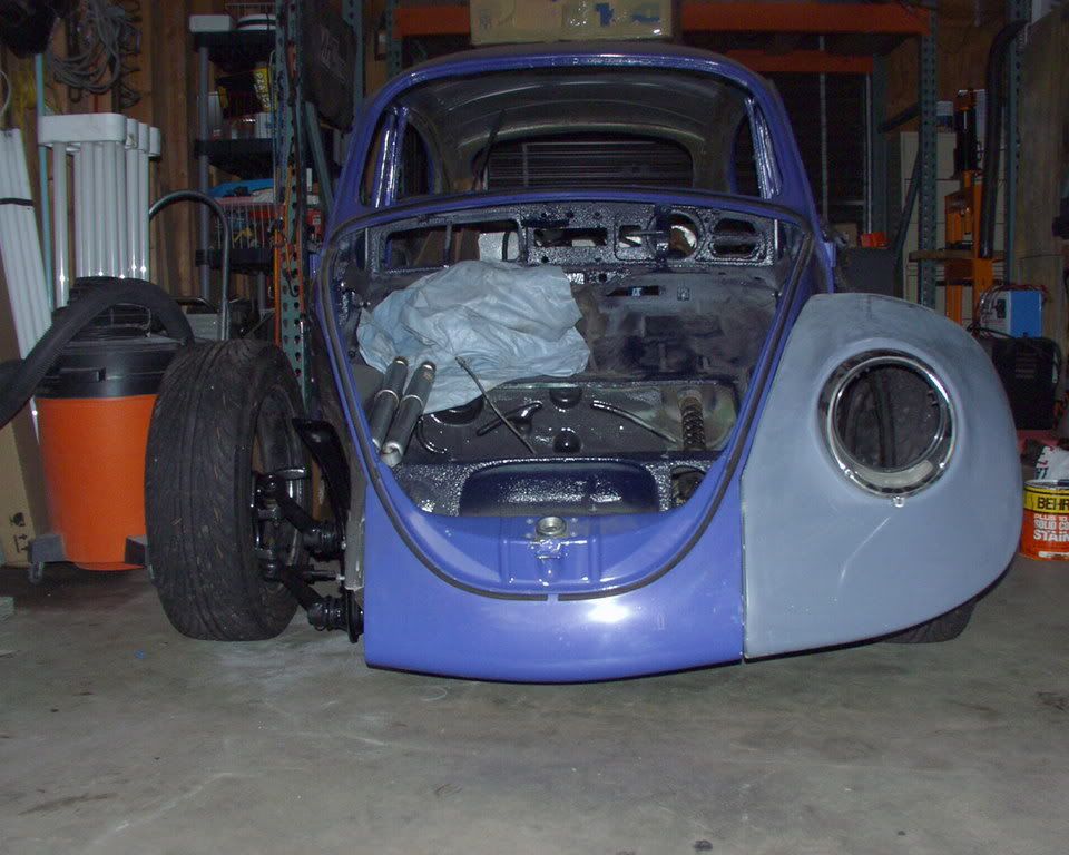 ![]() Front: Avis adjustable powdercoated beam CB drop spindles and disc brakes Stock height KYB GR2's 2-1/2" wider than stock CCC early style(`66/`67-down) fenders Rossi headlights 8mm spacers modified dust caps modified speedometer cable 16x6" ET50 wheels with 205/55's Only substancial difference is in the picture it's got 15x5.5" ET40 rims with 195/60's - which actually have 3.65mm more frontspace than the 16x6's. http://photobucket.com/albums/v212/KaferCh...s/Project%2069/ |